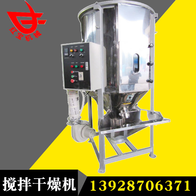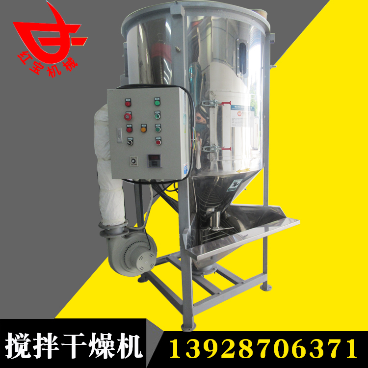 聚丙稀塑料顆粒大型熱風(fēng)干燥機(jī)主要用于多種顏色塑料顆粒的混合、干燥。是注塑機(jī).造粒機(jī)的必備配套設(shè)備之一,塑料粒子從進(jìn)料 斗進(jìn)入,在螺旋葉片推進(jìn)力的作用下,沿著葉片表面向上滑動前進(jìn),在上部的離心力作用下,向桶體四周拋開,散開的物料不斷向下移動,由循環(huán)出料口和桶內(nèi)循環(huán)料口不斷被螺旋葉片帶動提升,這樣反復(fù)循環(huán),達(dá)到混合的目的。與此同時(shí)空氣經(jīng)鼓風(fēng)機(jī)送至電加熱箱中,加熱后成為熱風(fēng)再經(jīng)溫控表自動控制,以均勻合適的熱風(fēng)從樹脂顆粒間一路穿透,穿過物料層,沿途進(jìn)行熱交換,不斷帶走濕氣,樹脂粒子由上而下徐徐下降過程中連續(xù)不斷得到吹掃干燥,完成高效率干燥和混合工藝。